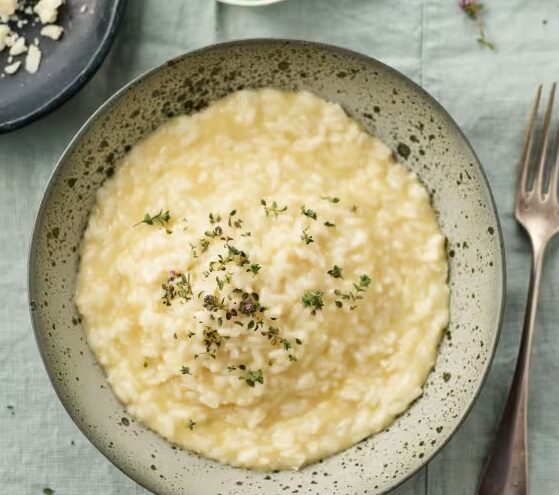 Aprecie o clássico risoto de parmesão, cremosidade única e sabor inconfundível que agrada a todos.