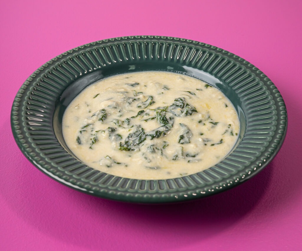 Dê mais cor e sabor ao seu prato com nosso creme de espinafre cremoso e cheio de personalidade.