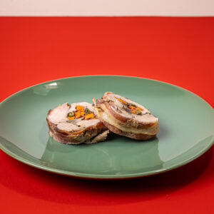 Encante-se com nosso filé suíno recheado com vegetais frescos e envolto em bacon crocante. Sabor e apresentação que impressionam.