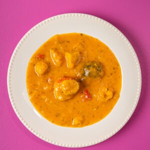 MOQUECA DE BANANA DA TERRA, ARROZ BRANCO E FAROFA DE CEBOLA – 435g