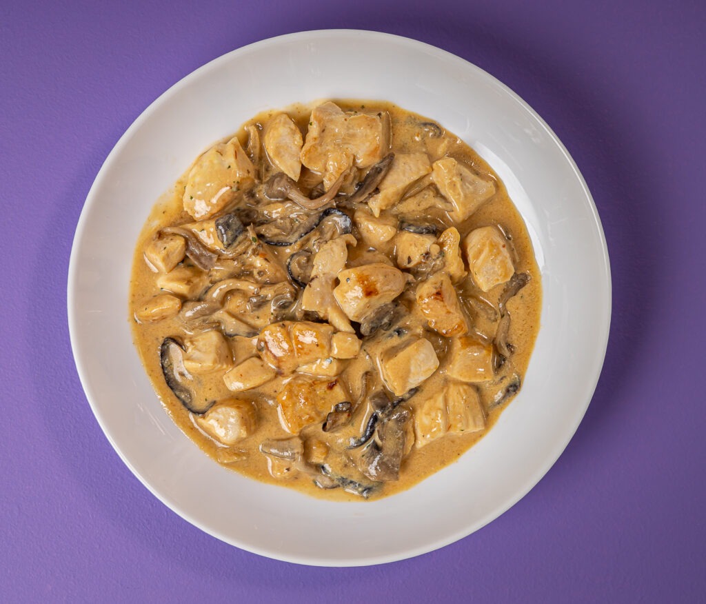 Saboreie a combinação irresistível de cubos de frango com especiarias e cogumelos frescos. Prato que encanta.